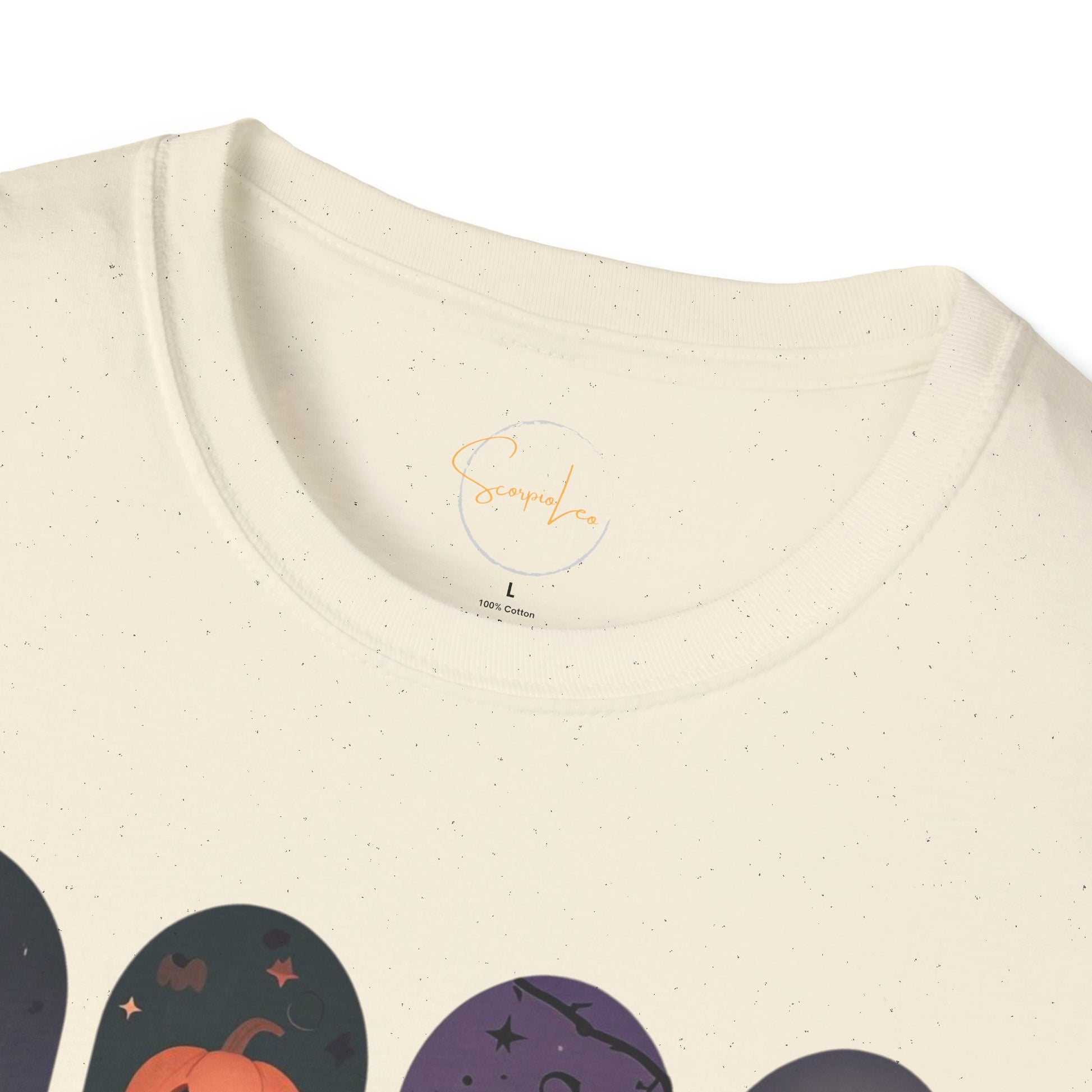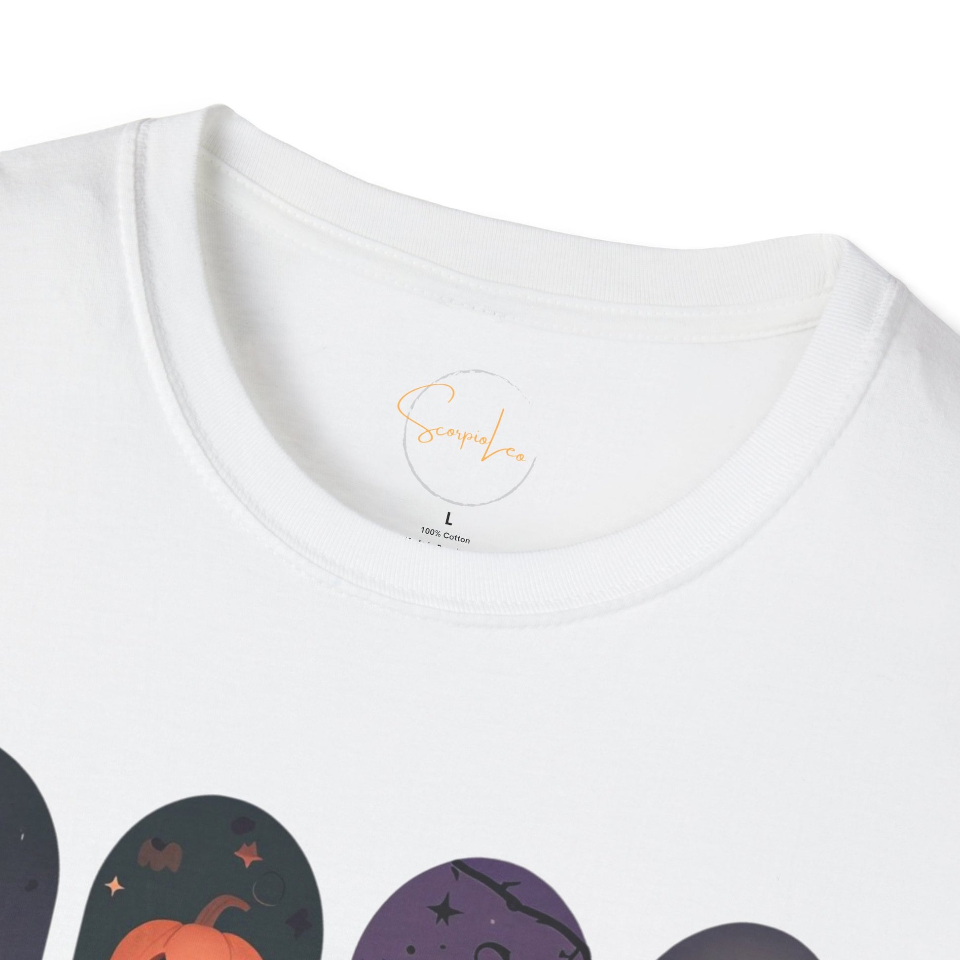 This T-shirt features a Halloween vibe with a cute design including a ghost, cat, crystal ball, and pumpkin. It exudes Boo-tiful Energy with a fun and festive look, perfect for Halloween enthusiasts and those who love spooky aesthetics. This unisex softstyle T-shirt is made from 100% ring-spun cotton, making it lightweight and comfortable to wear all year round. The classic fit and crew neckline offer a versatile style that can be dressed up or down for any occasion.